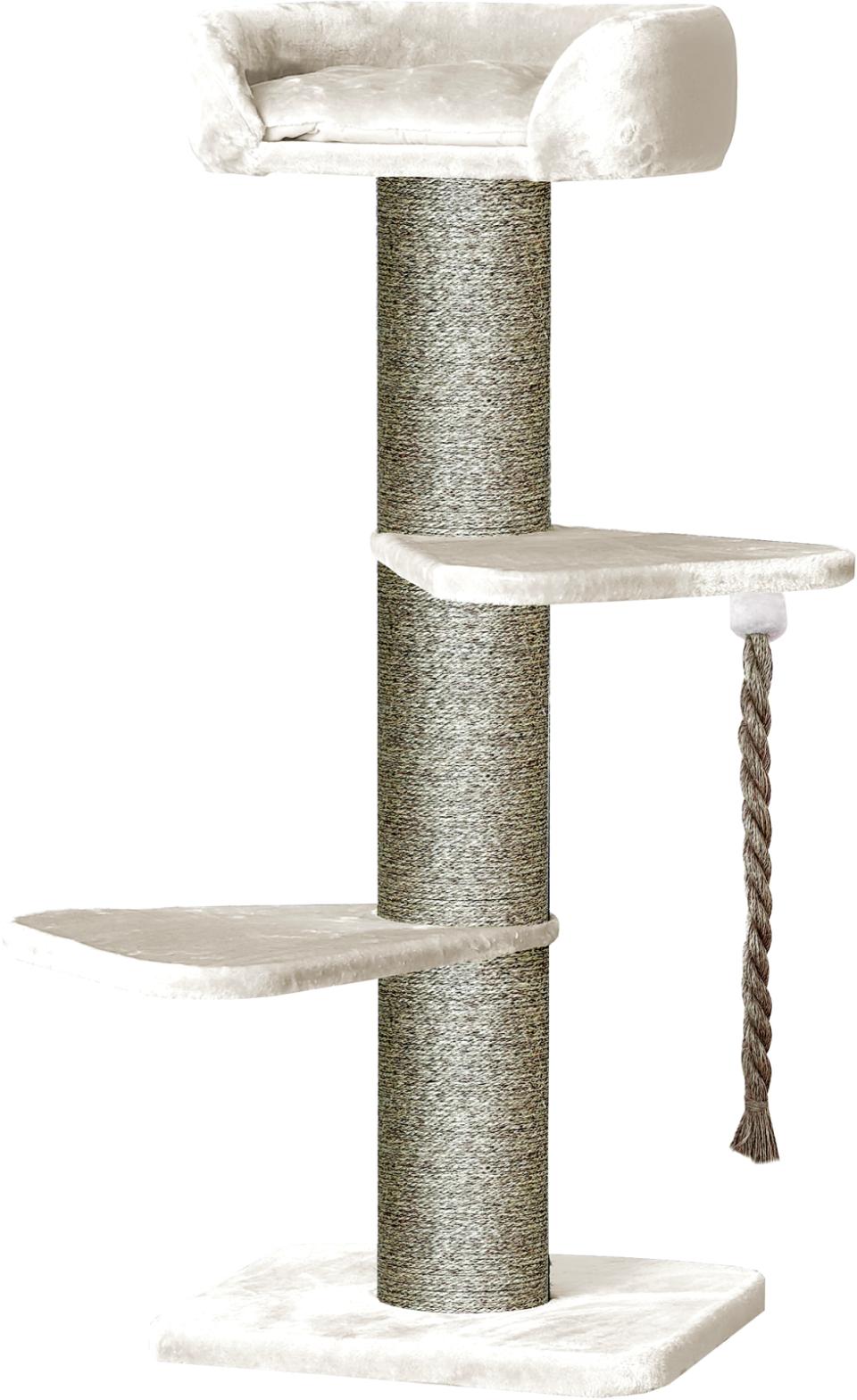 Detta klös- och klätterträd erbjuder din katt en mjuk sovplats i plysch, perfekt för avkoppling, samt ett lekrep för underhållning. Idealiskt för att tillgodose kattens naturliga behov och ge en rolig upplevelse.