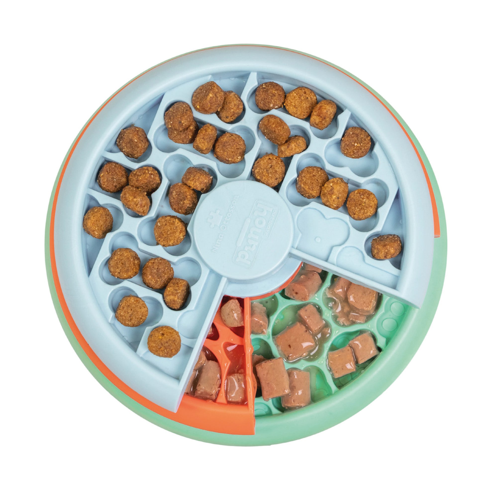 Detta berikningsspel består av tre snurrande lager där hunden måste använda sina problemlösningsförmågor för att vrida varje nivå och hitta de gömda godbitarna. Ett nivå 2-pussel som stimulerar hundens naturliga instinkter och bidrar till mental utveckling genom utmanande och rolig aktivering.