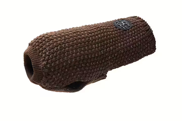 Mjuk och varm tröja stickad i tjockt garn av akryl. Garnet är reflekterande och gör att hunden syns bättre i dåliga ljusförhållanden. Tröjan är gjord för att hunden ska kunna röra sig helt naturligt och kan maskintvättas i 30°C. Vid plötsligt regn eller snö kan ett vattenavvisande hundtäcke enkelt dras på utanpå tröjan.