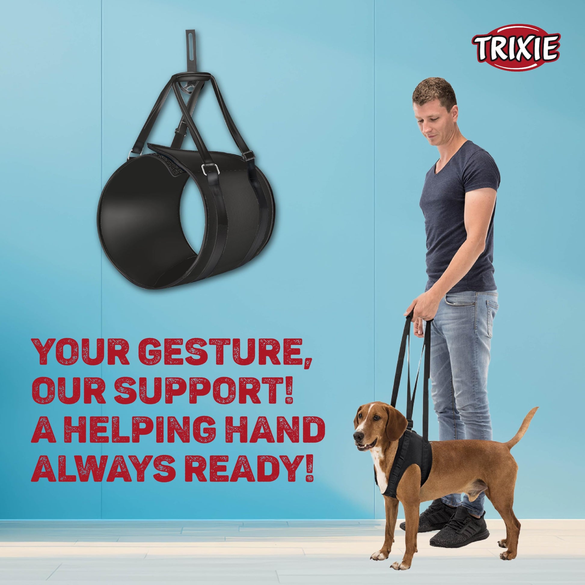 Praktisk lyftsele som ger din hund extra stöd och avlastning vid behov. Perfekt efter operation, vid rehabilitering eller när rörligheten behöver lite extra hjälp. Underlättar promenader, trappor och i- och urstigning i bil. Utformad för både fram- och bakdel med stabila handtag som ger dig ett säkert och bekvämt grepp.