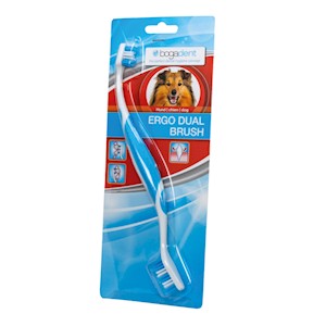 Bogadent Ergo Dual Brush är en tandborste till hundar för enkel och effektiv tandborstning. När plack och tandsten byggs upp, särskilt runt kindtänderna, kan det orsaka skada på både tandköttet och den stödjande bindväven. Hundens tänder bör därför borstas regelbundet, helst dagligen eller minst 2-3 gånger i veckan.